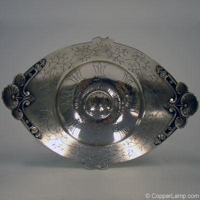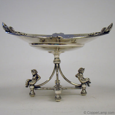 Description: Small silverplated Victorian centerpiece with engraved bowl and cherubs on the base.