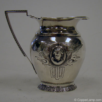 Description: Coin Silver deco styled, with a cherub head medallion design